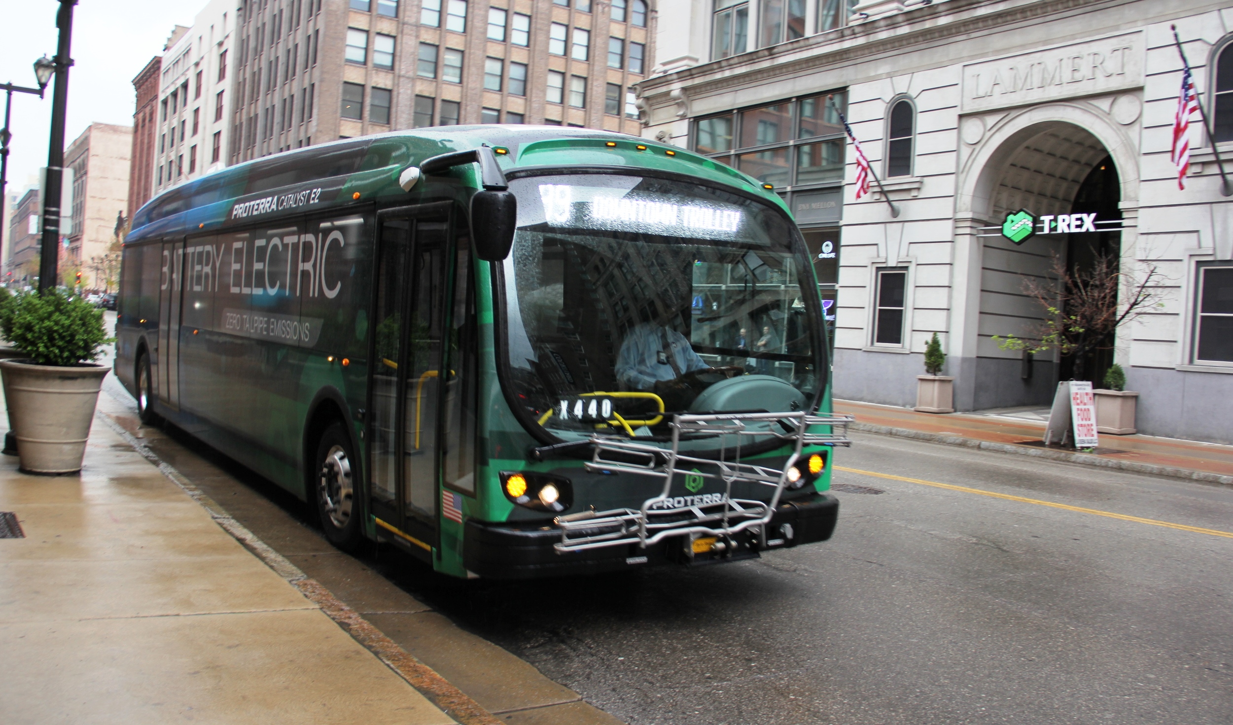 Metro will test drive a 42-foot all-electric bus on the #99 Downtown Trolley route, beginning today through Tuesday, April 11. The all-electric Proterra bus, part of the E2 all-electric series, can safely operate on a single charge for about 250 miles. The bus is powered by a magnetic drive motor with a 2-speed gear box. The battery, which can store about 440 kilowatts of electricity, takes less than four hours to recharge. The testing will allow MetroBus operators and Metro’s maintenance team to see the bus in action and evaluate its performance, including how it operates under different passenger loads and in changing traffic and environmental conditions.